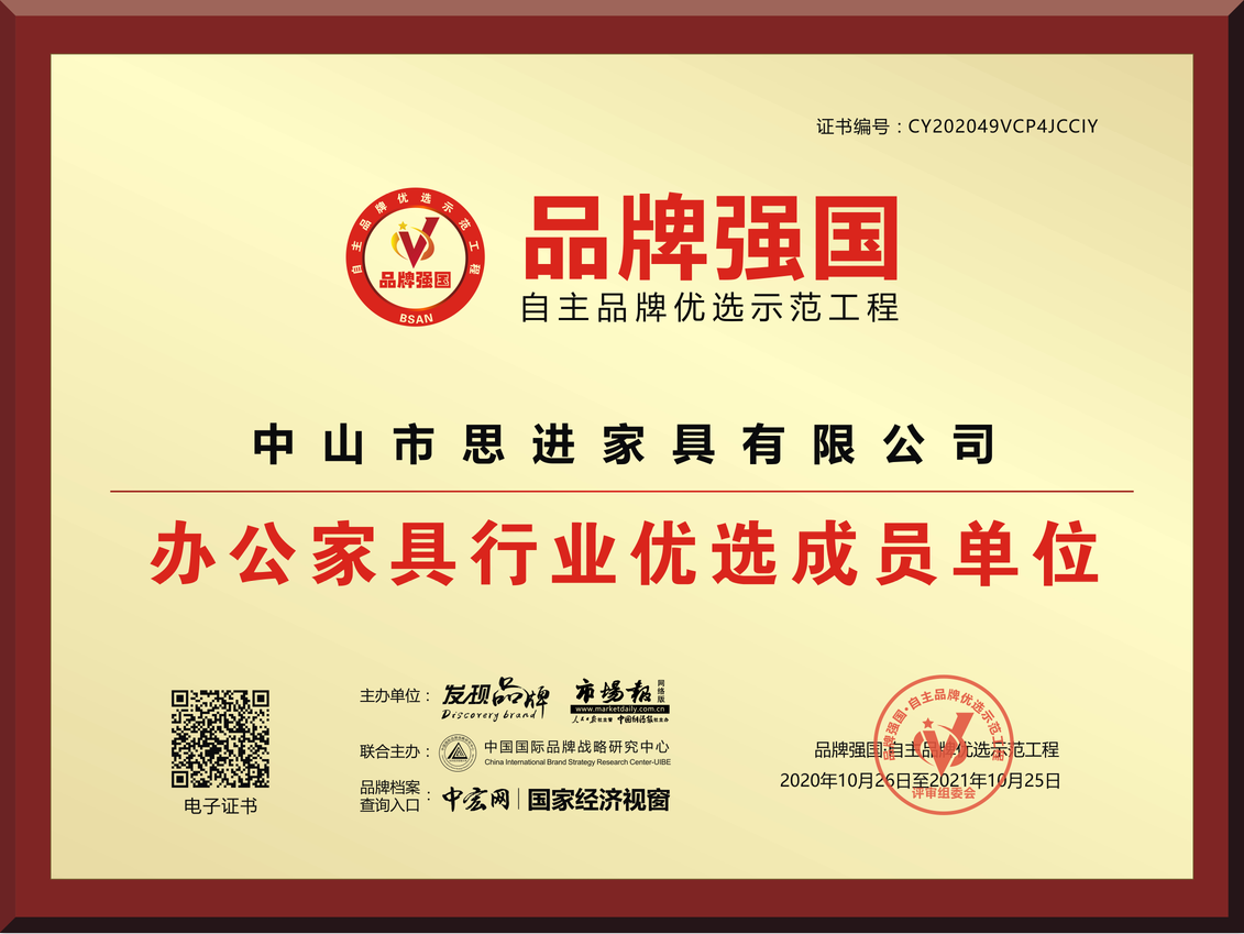 思進(jìn)家具是一家集設(shè)計(jì)、研發(fā)、生產(chǎn)、銷售、服務(wù)于一體的綜合型辦公家具及酒店家具品牌企業(yè)。擁有一批高素質(zhì)的資深管理人才,先后從德國、意大利等國引進(jìn)大批先進(jìn)設(shè)備,擁有 5 大分廠, 多條現(xiàn)代化的生產(chǎn)線,全國有 100 余家品牌專賣店,近 1000 名優(yōu)秀員工,是綜合配套能力最強(qiáng)的辦公家具廠家之一。