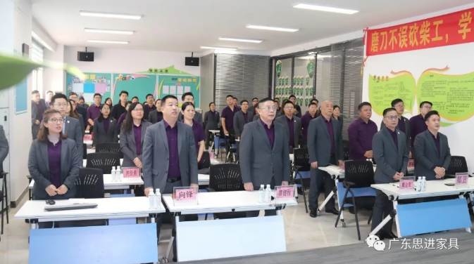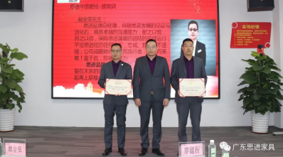 廖董事長作為思進(jìn)家具戰(zhàn)略定位第一人,從為員工制定個人目標(biāo)“三年買車、五年買房”到今天的“營銷人員成長晉升層級”,他始終不忘堅持思進(jìn)核心價值觀:支持員工實現(xiàn)個人價值,員工助推企業(yè)持續(xù)發(fā)展,我們共同承擔(dān)社會責(zé)任,實現(xiàn)國富民強。最后廖董事長期望思進(jìn)品牌涌現(xiàn)更多的戰(zhàn)斗力強、忠誠度高的優(yōu)秀人才,與思進(jìn)共同成長!