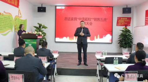 12月12日下午,思進(jìn)品牌2020年“中流砥柱”“銷售五虎”表彰大會在思進(jìn)家具工業(yè)園圓滿召開。思進(jìn)家具董事長廖健程,思進(jìn)品牌總經(jīng)理戴金榮、思進(jìn)品牌營銷中心總經(jīng)理李傳波、新營銷中心總經(jīng)理陳斌、思進(jìn)品牌生產(chǎn)總經(jīng)理向鋒以及特邀嘉賓森博萊酒店家居總經(jīng)理鄭衛(wèi),各部門負(fù)責(zé)人,業(yè)務(wù)骨干等近百人參加會議。